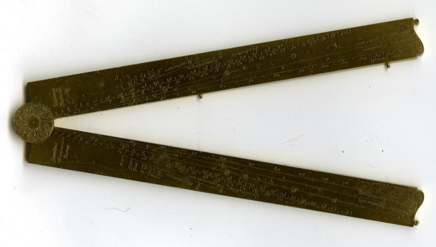 This later version features many innovations and ergonomic conveniences, such as the cursor (a simple addition which greatly improves precision) and the addition of other scales (for trigonometric functions, etc.) reminiscent of the multiple scales engraved onto Galileo’s sector.