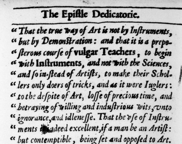 [Gunter] brought with him his sector and quadrant, and fell to resolving triangles and doing a great many fine things. Said the grave knight [Savile], “Do you call this reading of geometry? This is showing of tricks, man!”, and so dismissed him with scorn, and sent for Henry Briggs.